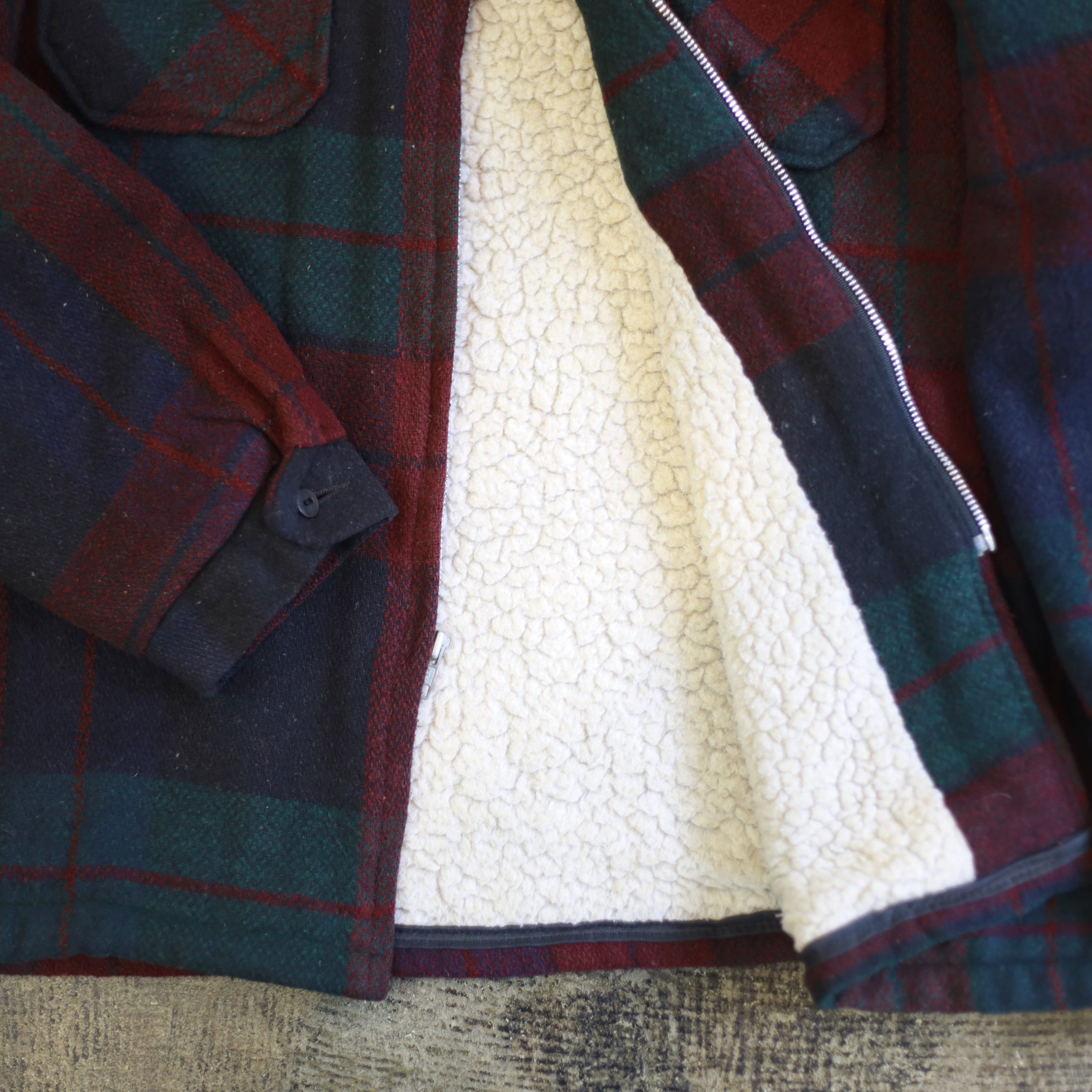Old 80s Wool Boa Lining Zip Up CPO Jacket Made in USA