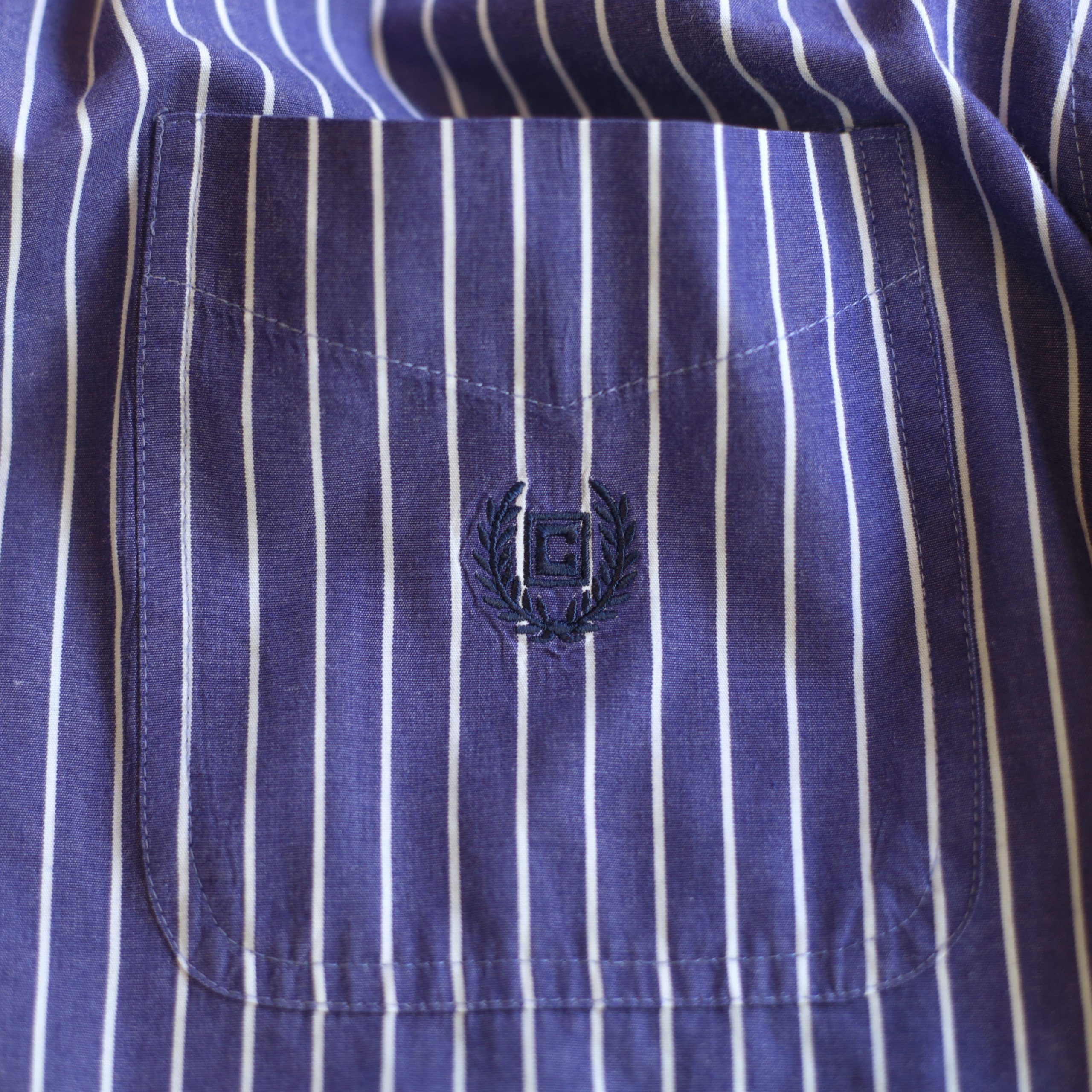 配色的にもパープルをミックスしたような風合い良いネイビーにホワイトのペンストライプ柄、