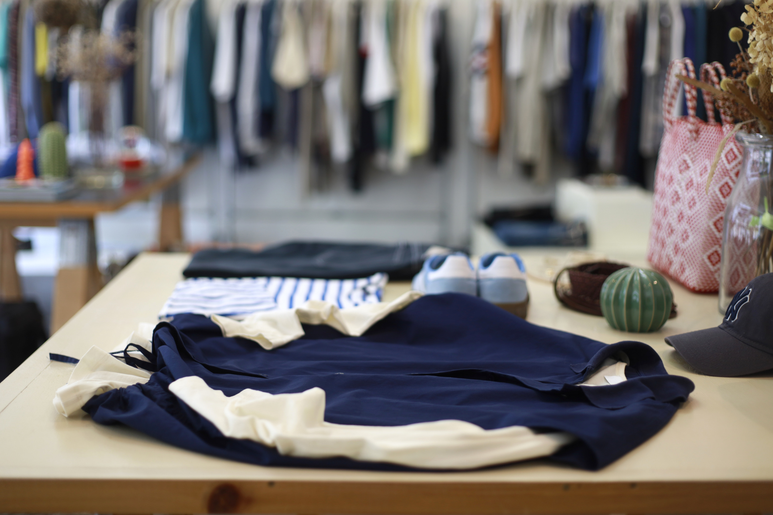 当店では、今の時季から着やすいアイテムや